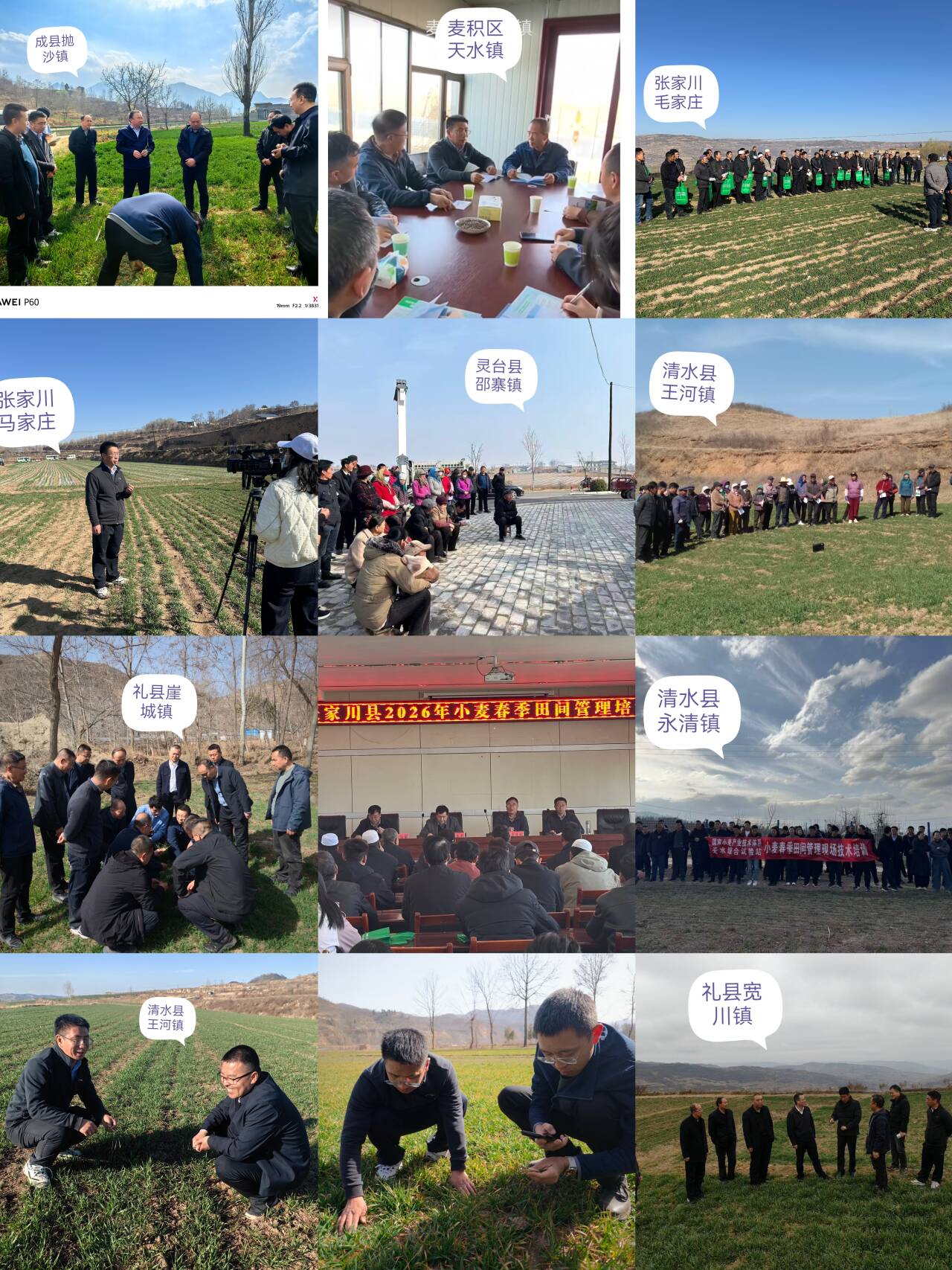 为夯实夏粮丰收基础,3月4日至12日,专家团队深入清水、张家川、礼县、秦州、麦积、西和、成县、武都、文县、灵台等10个县区的27个试验示范基地,围绕“促弱转壮增群”核心目标,开展春季田间管护调研、技术指导与集中培训。